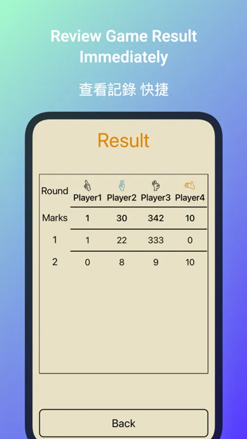 After the game, they can put their marks into the app then It will record it automatically, so you can check the record of each game every time. Cool.