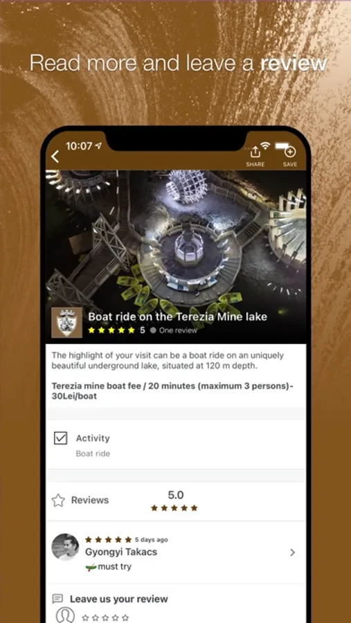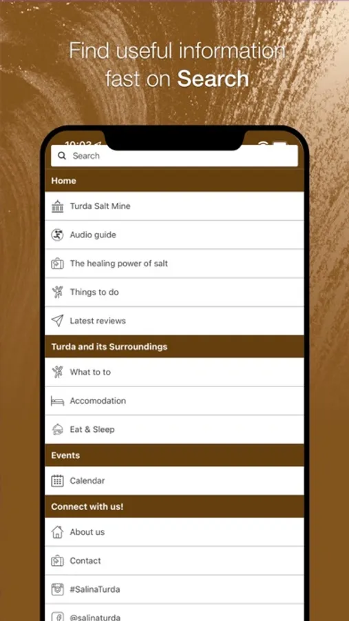 Aplicația este ghidul turistic digital al Salinei Turda care facilitează accesul la informație al vizitatorilor, contribuind astfel la desăvârșirea experienței de vizitare a obiectivului turistic. Prin intermediul acestei aplicații, Salina Turda vi se va dezvălui treptat, in functie de zona în care vă aflați. Disponibilă în 3 limbi.