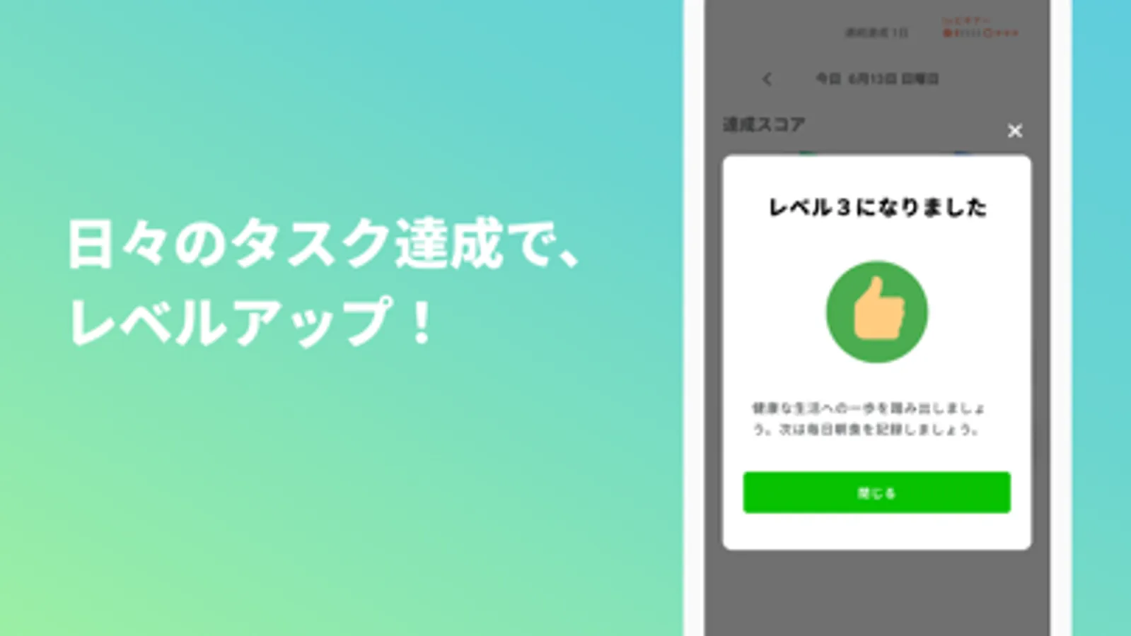 ③慣れてきたら体重の登録、歩数の計測、食事の登録など徐々にステップアップしましょう