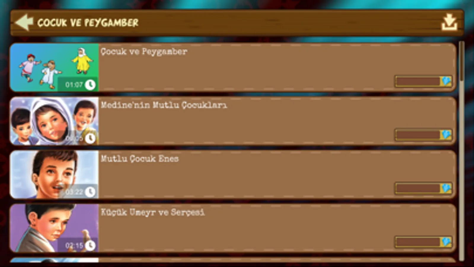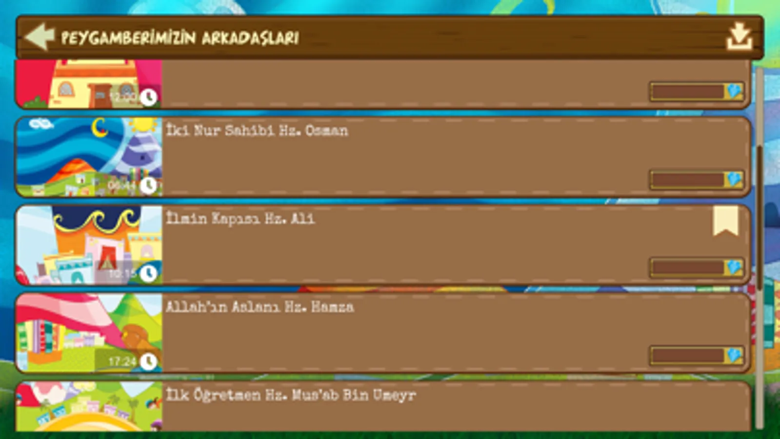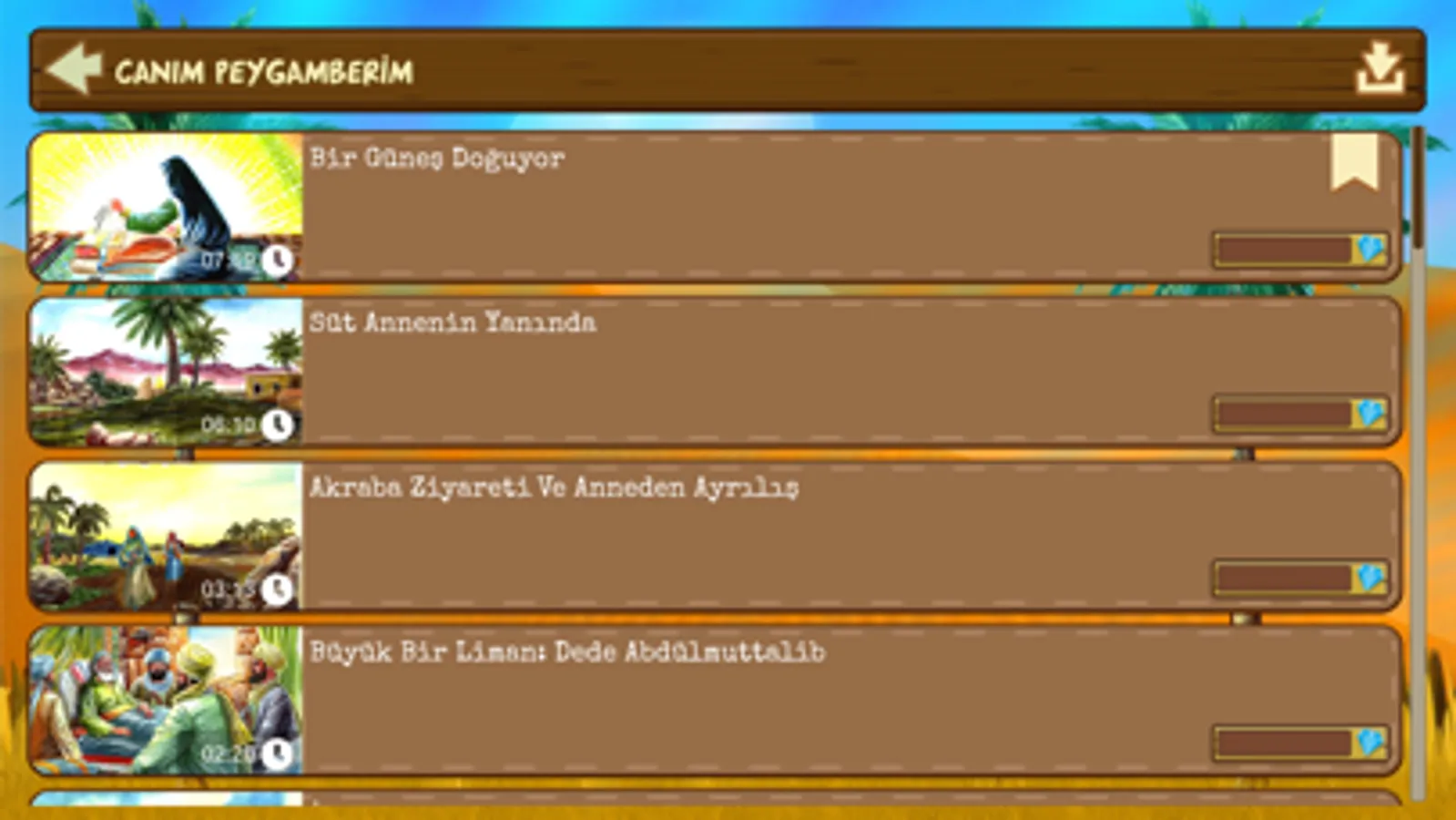 - Listen and watch the stories between the children and our Prophet.