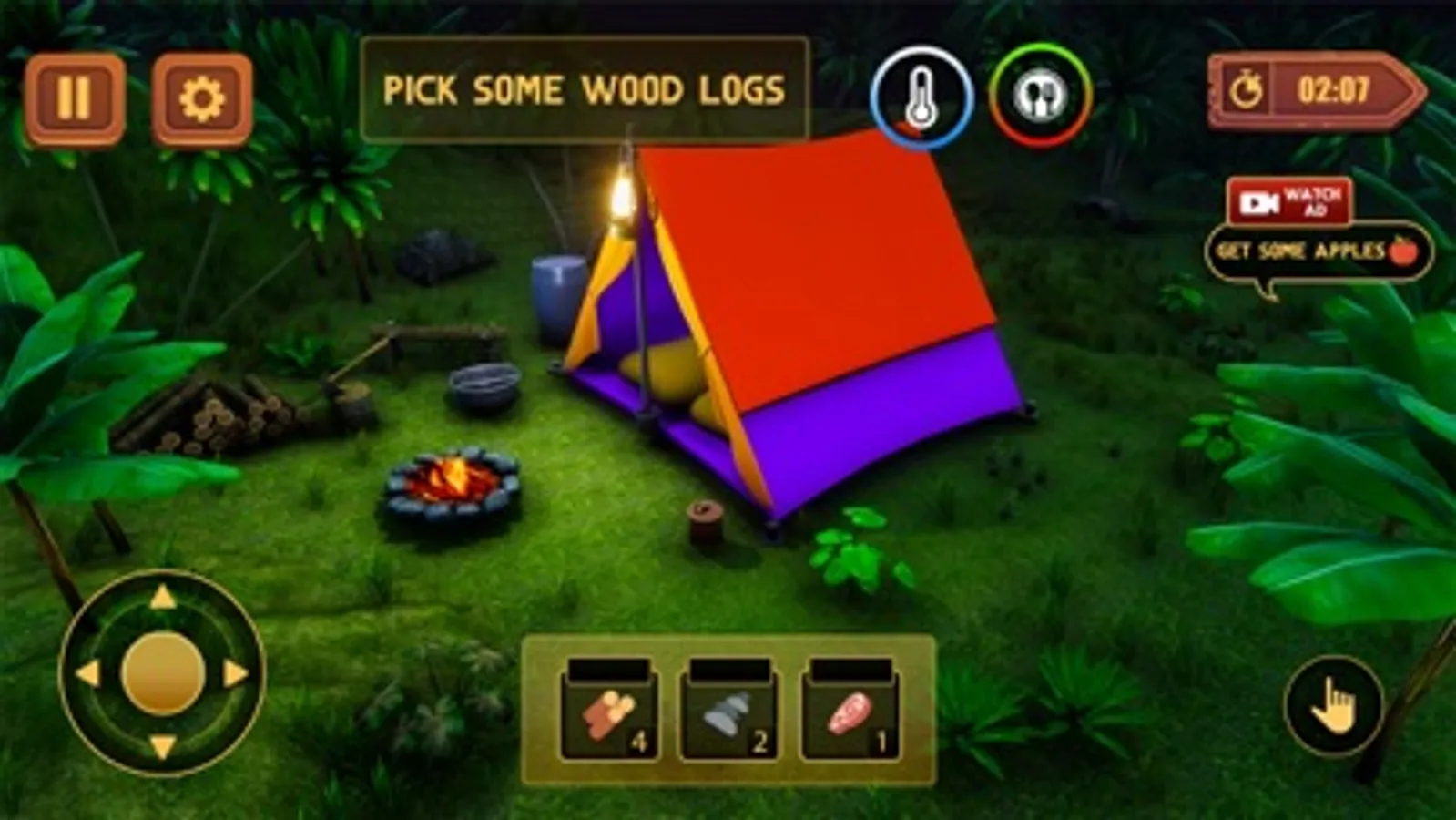 In this jungle survival simulator, you will have to deal with hunger, thirst, and rough conditions. Fight for the survival games and find your way back to safety. Keep searching for food to eat and avoid getting cold. Find a way to call for help, fight for survival in the wild forest.