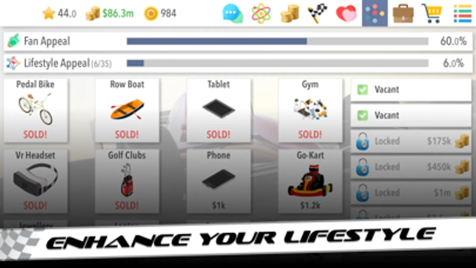 Start your career as a kart racer and work your up to become the F1 Champion!