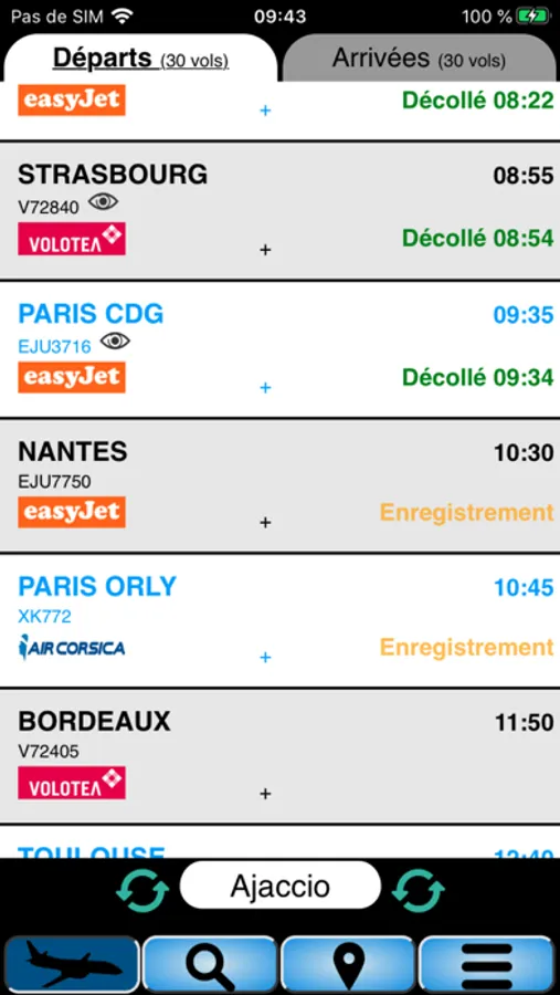 Horaires en temps réel de l'Aéroports d'Ajaccio.