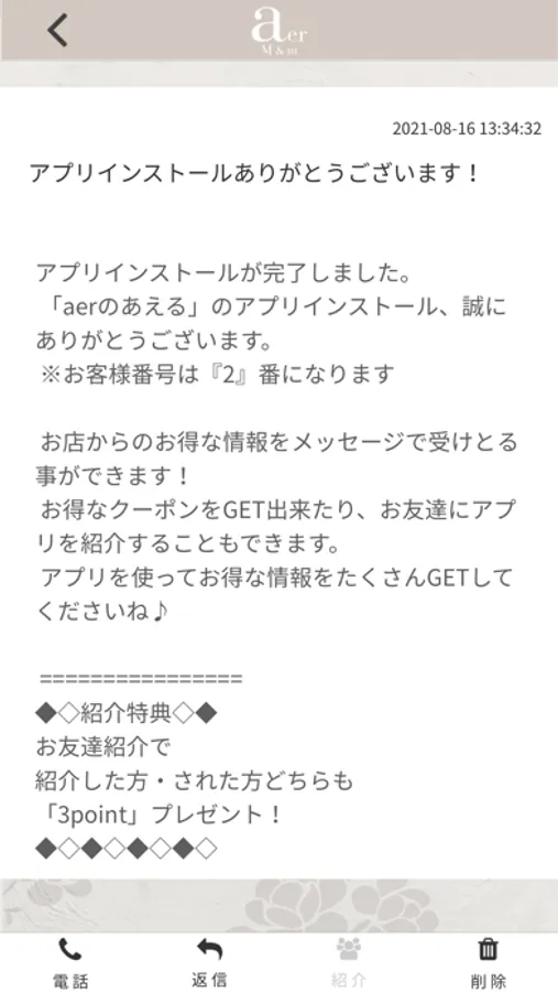 aerのあえるのアプリをSNSを通じてお友達に紹介する事ができます。