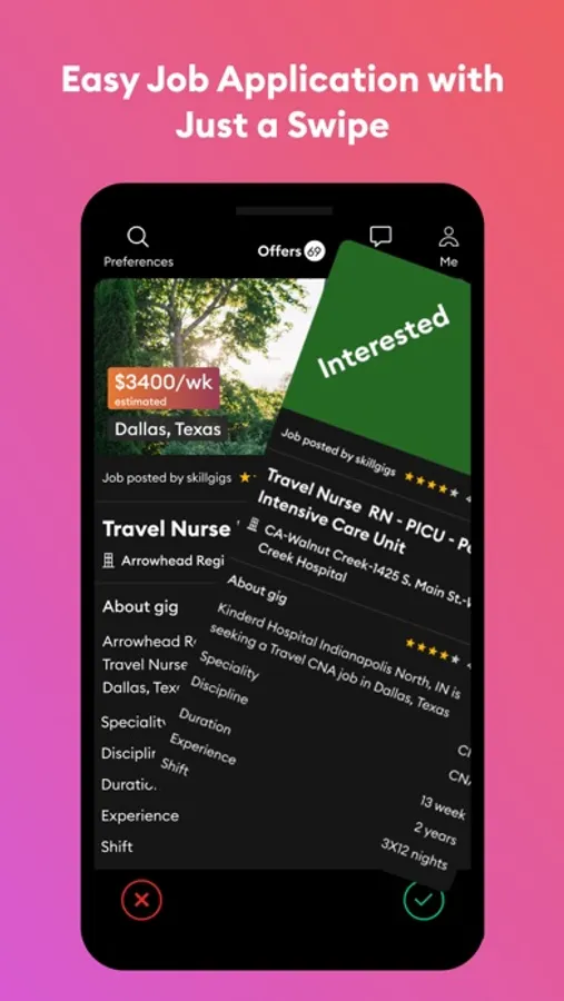 - Simple, fast, and convenient, swipe to choose from multiple jobs offers daily
