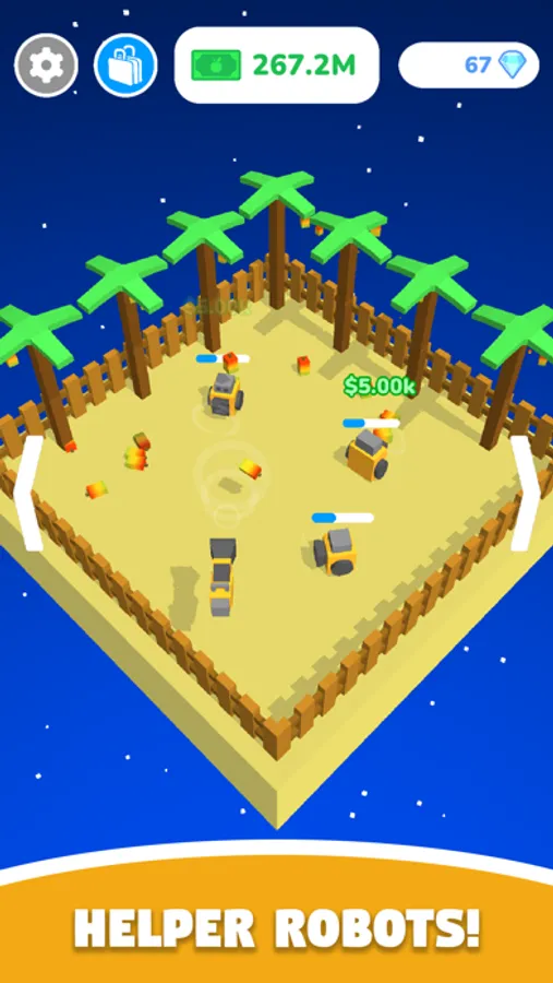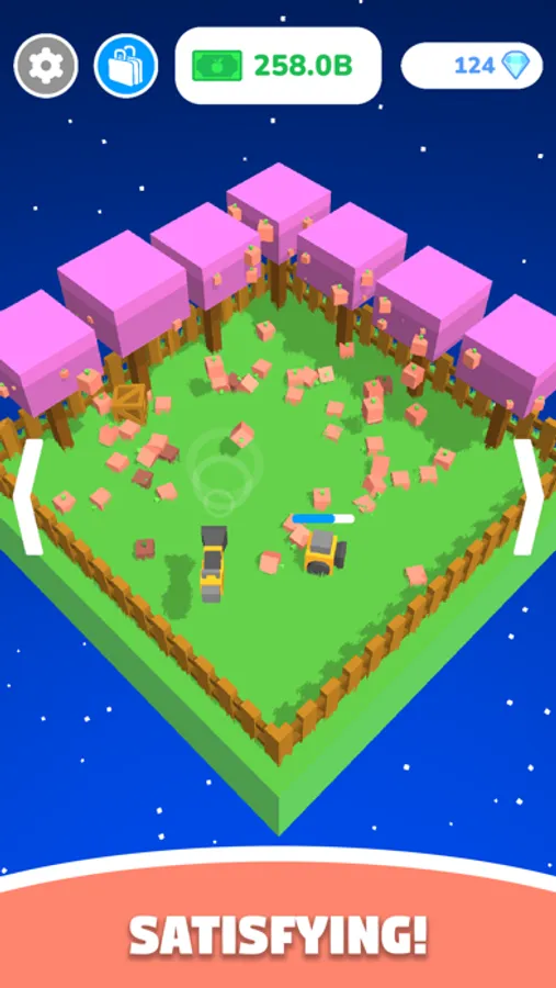 Control a vacuum with just a touch, and suck up piles of fruits! Hire robots to collect fruits for you, and expand your farm. Pass time and relax with a satisfying little pocket game.