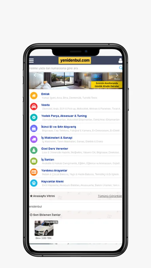 Emlak, Vasıta, Alışveriş, İş Makineleri & Sanayi, Yedek Parça-Aksesuar-Donanım & Tuning, Hizmetler, İş İlanları, Hayvanlar Âlemi, Özel Ders Verenler ve Yardımcı Arayanlar ve Sektörde bir ilk olan Kadın Girişimciler olmak üzere toplam 10 kategoride hizmet veren yenidenbul.com uygulaması ile hizmetinizdeyiz.