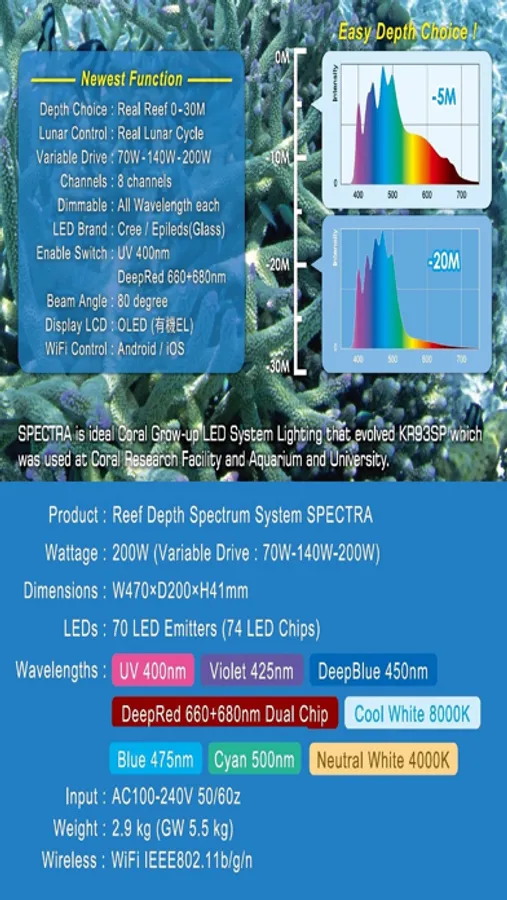 Control and program your ECO-LAMPS products wirelessly with ture Reed Depth Spectrum, Ture Coral Photosynthesis, Ture Coral Color Rendering, Ture Coral Fluirescent Protein.