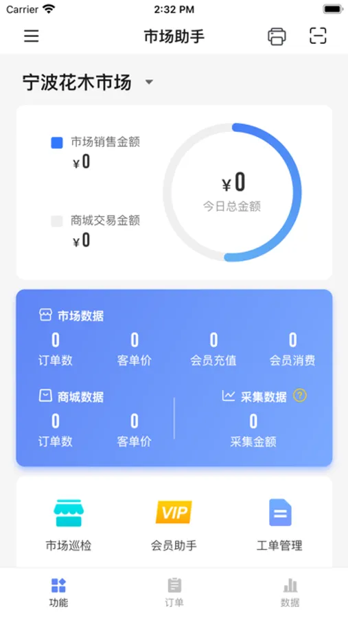 农贸市场助手是一款用于市场管理方移动作业的工具。支持移动巡检、移动办理会员、移动开会员卡;市场营业数据、会员交易数据实时查询;设备绑定