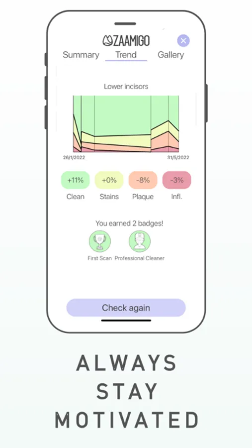 - It's gamified, so you can improve your dental care step-by-step and earn badges for it