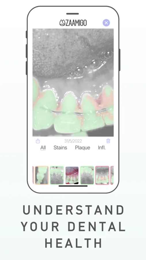 - Each image is analyzed for stains, plaque and inflamed gums