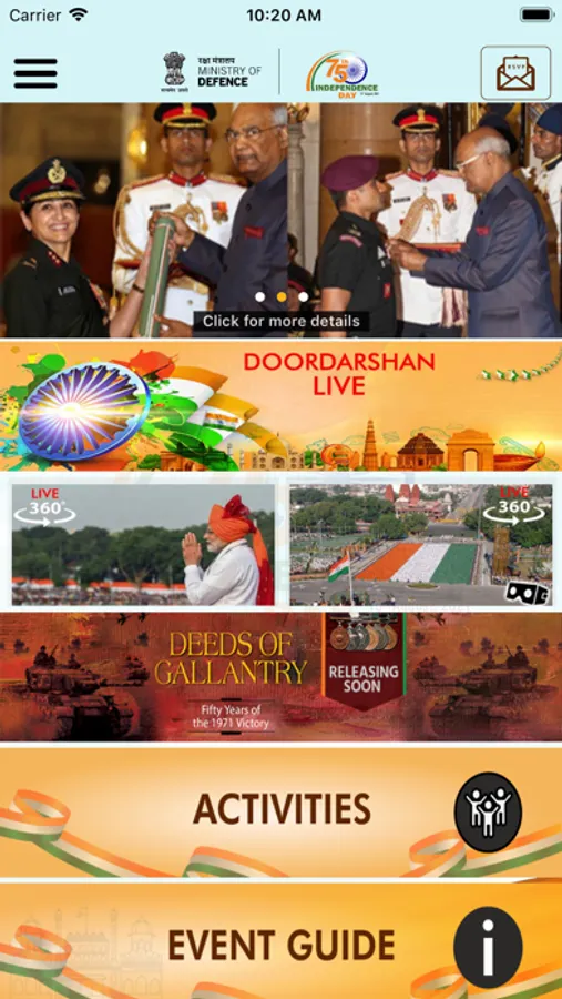 Indian IDC 2021 is the official mobile application Ministry of Defence, Government of India. It has been developed especially for the occasion of the 75th Indian Independence Day 2021 Celebrations. The app is available free for all and provide updates and information regarding the Independence Day. It will also LIVE stream the Indian Independence Day Celebrations on 15th August 2021 in VR 360. Tune in to watch the entire telecast !