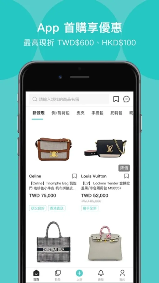 新人於 App 應用程式首次下單,最高可折 TWD$1,200(台灣限定)、HKD$300(香港限定)、MOP$300(澳門限定)快來體驗好用的二手精品名牌平台!