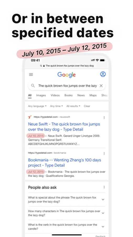 The app allows you to search for information on Google for a specific date or in between specified dates.