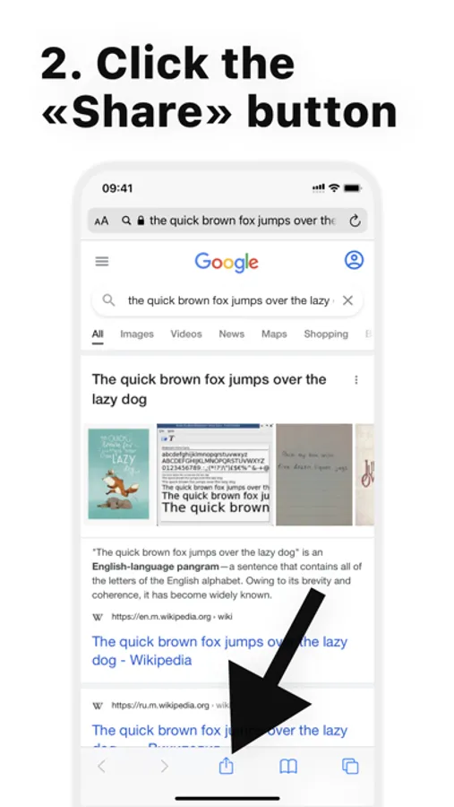 2. Click the «Share» button and select the extension (the extension has the same icon as the app)
