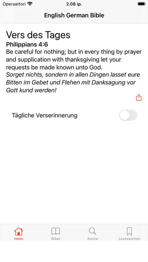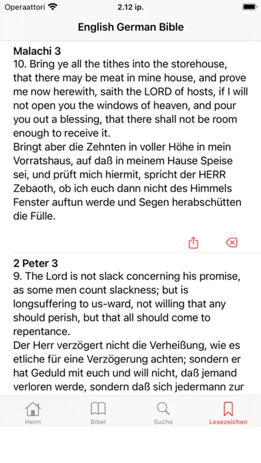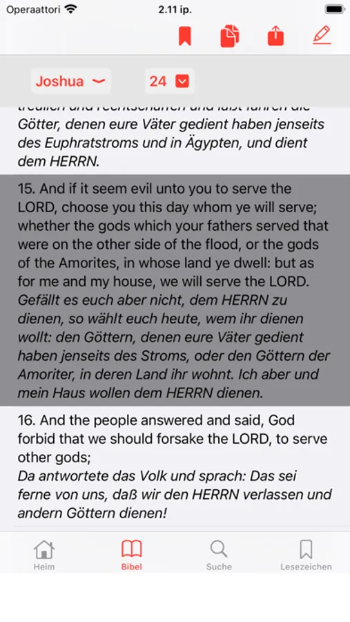 An English with German parallel version Holy Bible that is completely offline. This is the only Bible app you'll need when attending a church service or personal devotion. You can highlight, copy, bookmark or share verse(s).