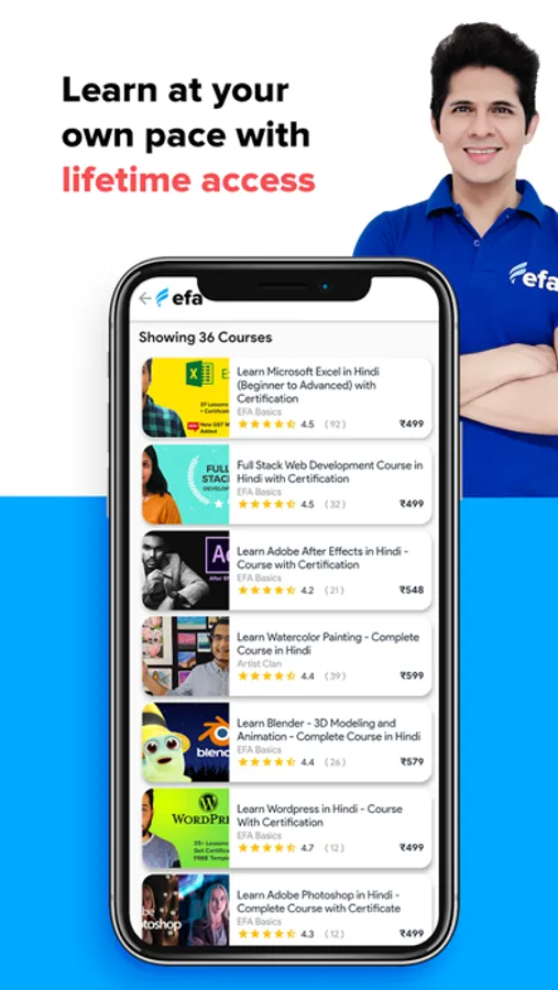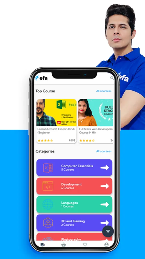 At EFA we aim to become India's largest on-demand learning platform for skills. We envision that talents and tutors from all over India get a platform through which they can spread their knowledge and make a career out of digital course creation. For students, our focus is providing them with the highest quality learning material at a fraction of cost, and complete ease of learning.