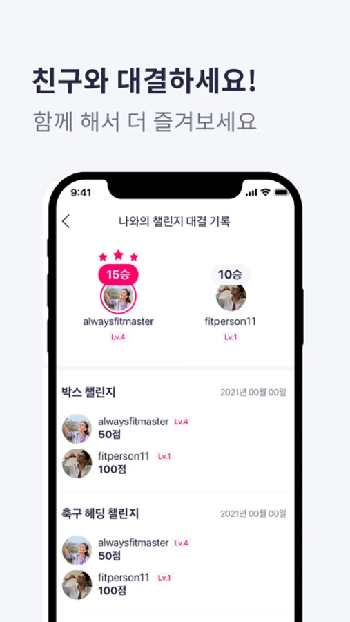 - 똑같은 운동을 반복하는 대신 기록과 대결을 통해 발전할 수 있습니다.