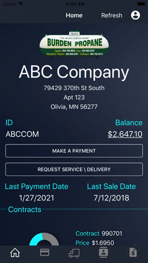 Information at your fingertips! This app gives you direct access to your account balance, location and contract information. It also gives you the ability to store and process payment and request service work and deliveries directly through the app.