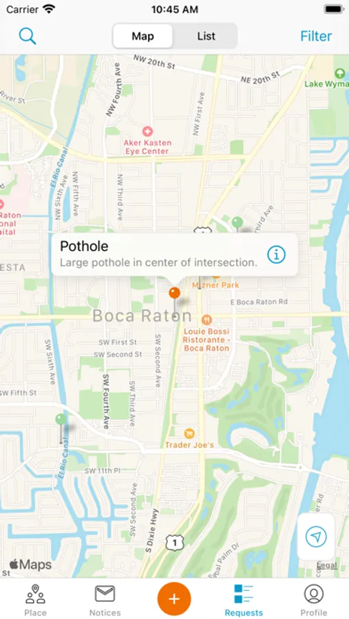 My Boca makes connecting with the City of Boca Raton easy and convenient. Reporting local issues like potholes, damaged street signs or missed sanitation collection is done quickly and easily by opening the app, submitting a service request, and then tracking the city’s response. You can also get the latest information and updates from the City and quickly navigate to trending topics and stories. Downloading and using My Boca is free and easy!