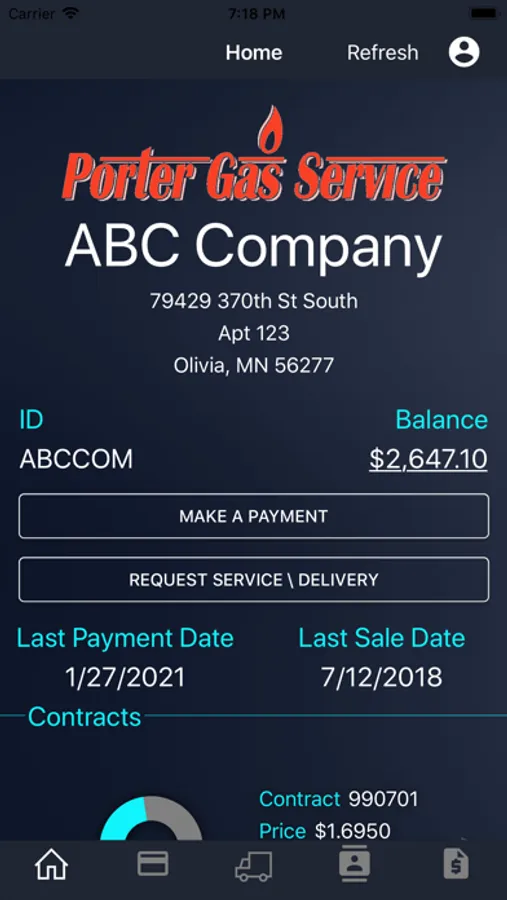 Information at your fingertips! This app gives you direct access to your account balance, location and contract information. It also gives you the ability to store and process payment and request service work and deliveries directly through the app.