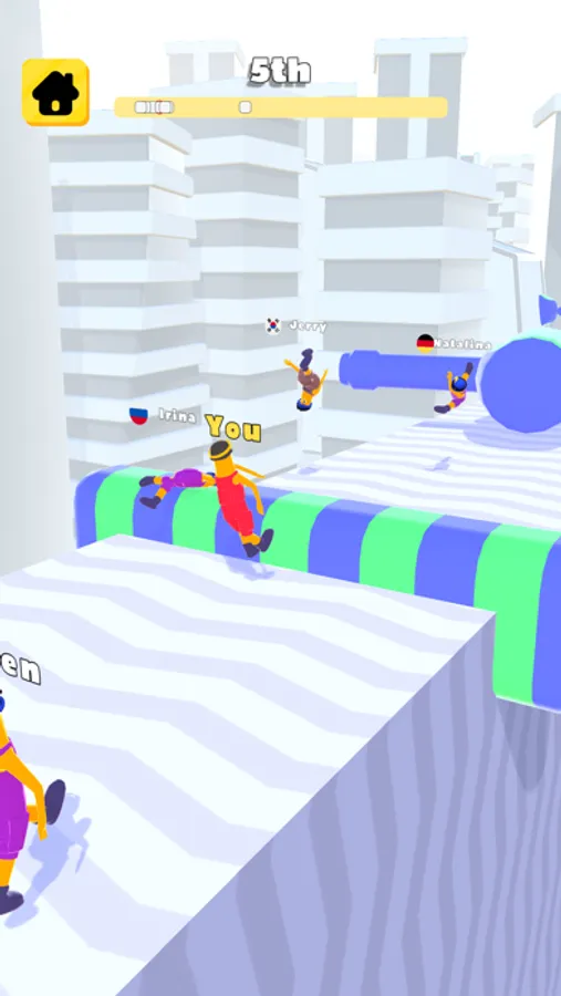 A silly race is about to start! Watch out for the obstacles, some of them will slow you down, some of them will speed you up. Try to control the jump of your dummy character to become the winner. Harder than you think, have fun!