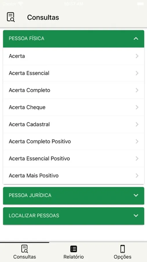 Além das consultas mais habituais, e o score de crédito, também estão disponíveis neste aplicativo as consultas das famílias Acerta e Define.
