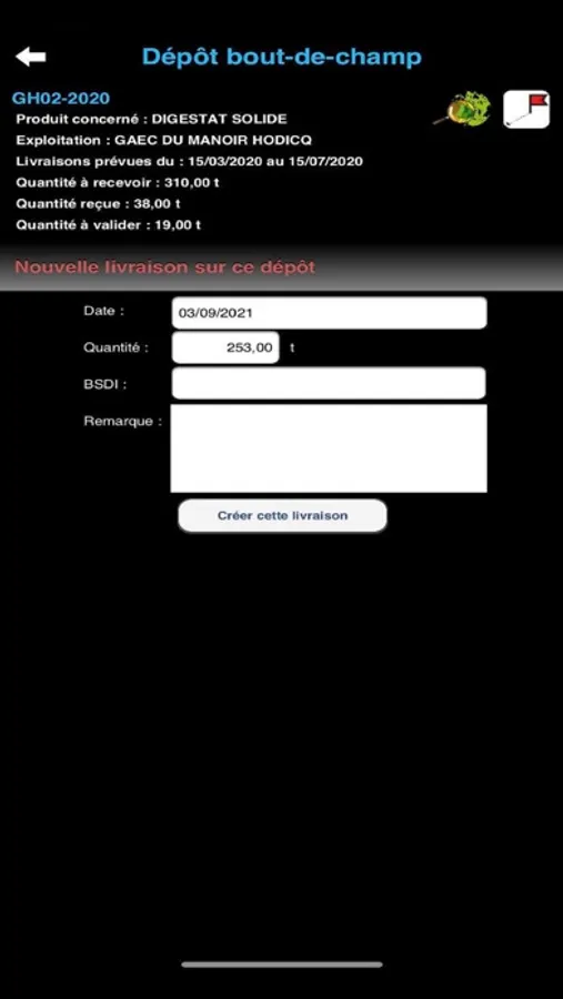 - Transporteurs : planification des dépôts à livrer et saisie des livraisons