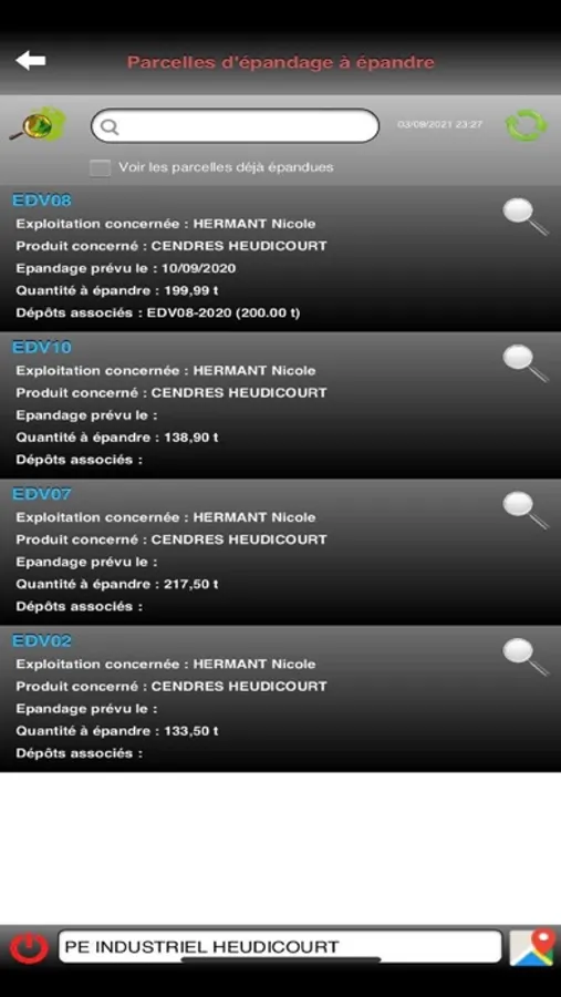 Retrouvez sur Ermes Mobile toutes vos données de plans d'épandages : parcellaire, agriculteurs, aptitudes, points de suivi des sols.