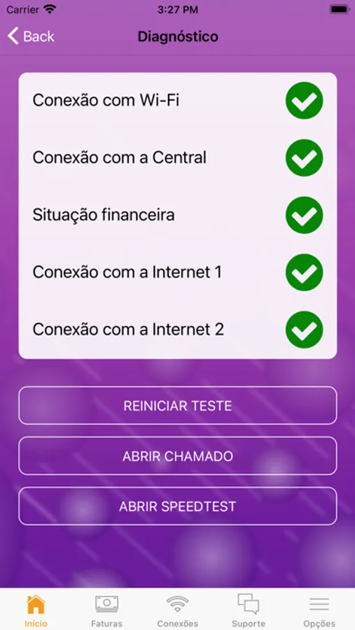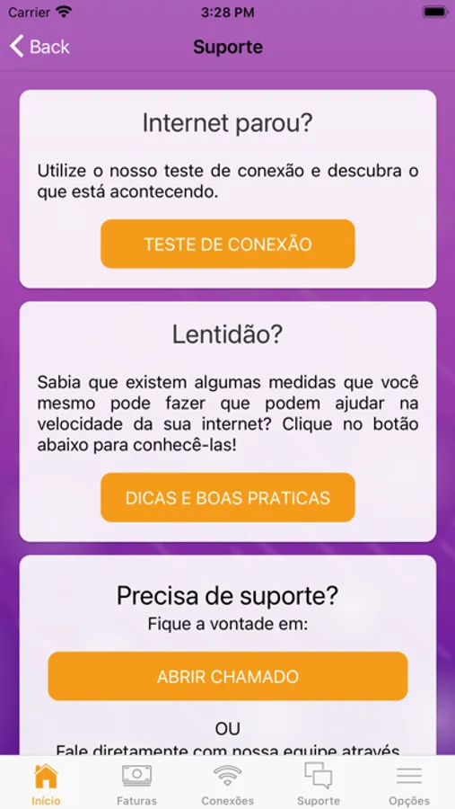 • Realização testes de conexão e velocidade;