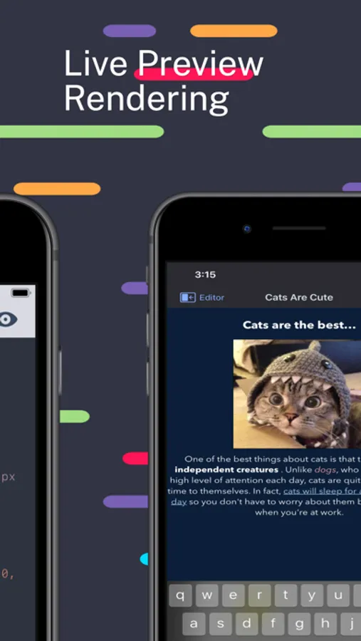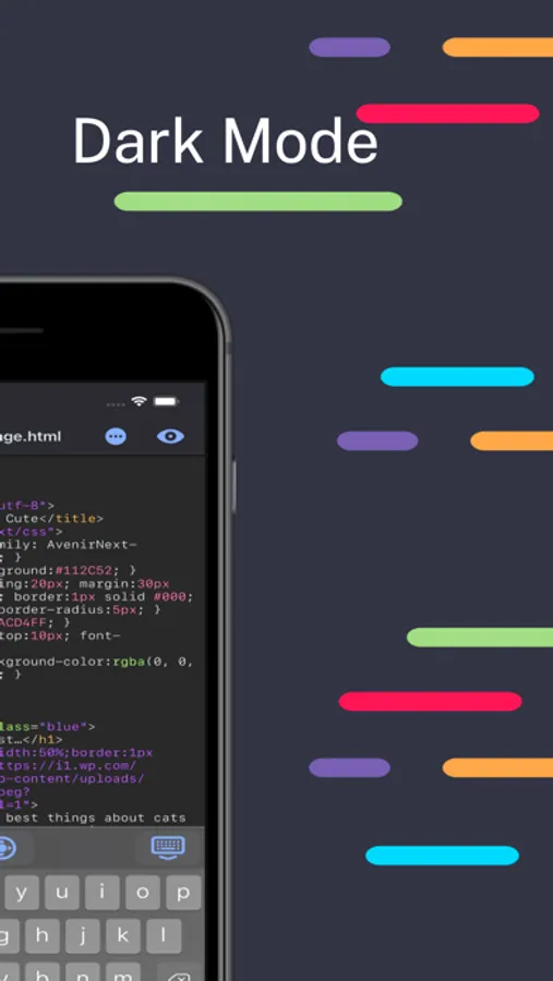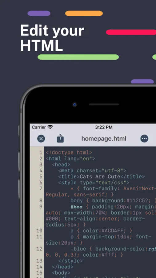 With HTML Editor, you can open any existing HTML document on your device or in your iCloud storage. Simply drop your existing HTML document onto our app icon to open that document within HTML Editor.