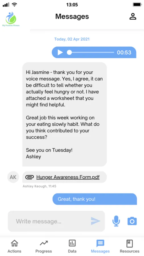 The My Positive Fitness app allows access to HealthKit, allowing clients to automatically pull in their activity and steps data from Apple Health to their app.