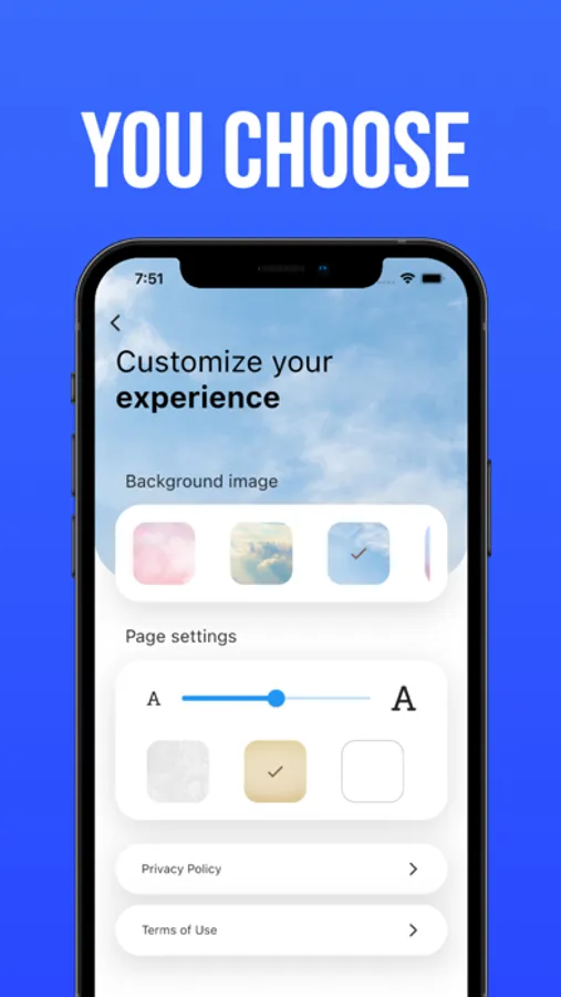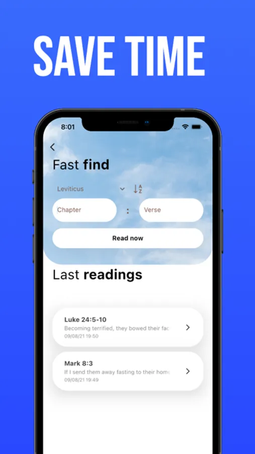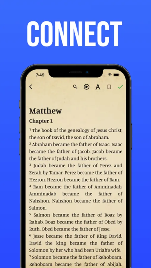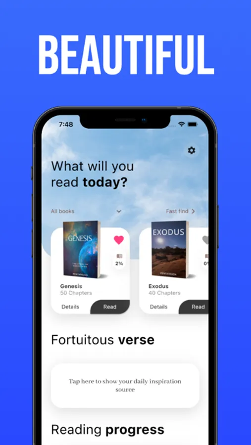 The app was designed for you to track your progress through the Readmeter. You can also highlight verses, share them on your favorite social network and inspire others.