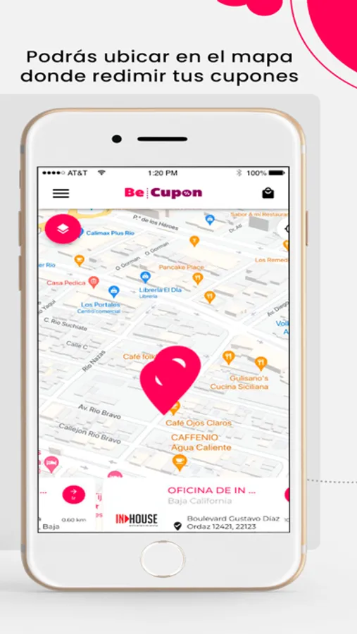 - Encontrar los BeCupon cerca de ti usando el mapa.