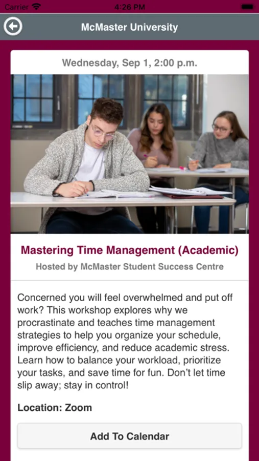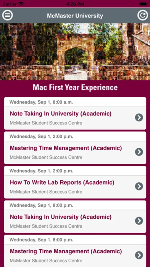 Use the McMaster University Events app to find out what events are happening and find out how you can get involved on campus!