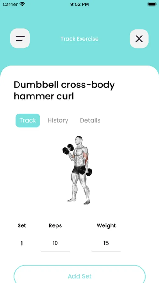 • Extensive gym exercise database – choose the exercise and body part, and the app will guide you on how to perform the exercise correctly through an illustrated video. You can also input the number of sets & weights so you can track your routines.