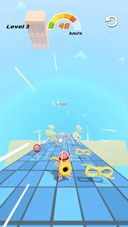 Swipe over the obstacles and collect the pieces of rope. If your rope breaks, you will quickly fall down. Reach from the top of the building to its floor!