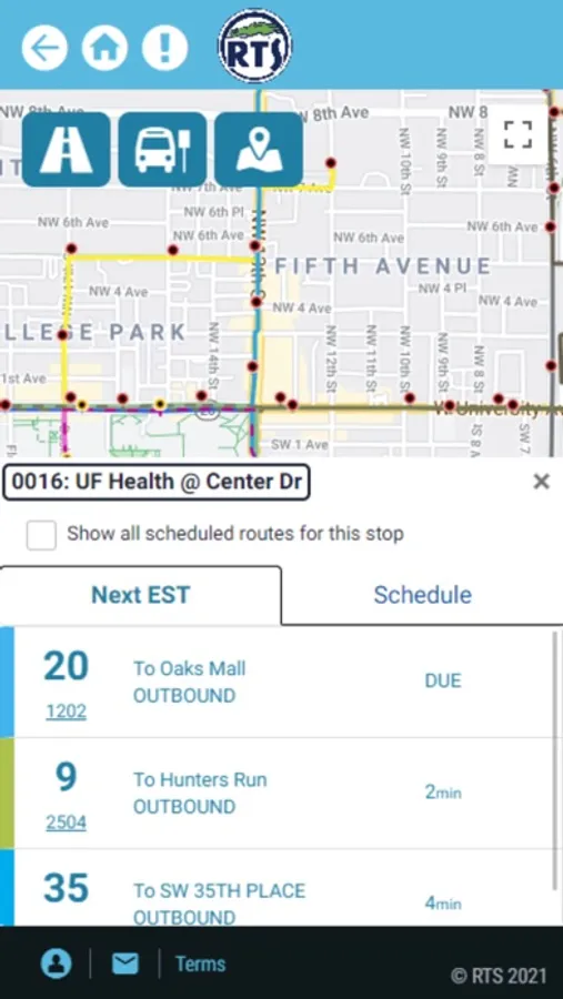 GNV RideRTS, your source for real-time bus arrival information in Gainesville, Florida. Residents, students and visitors to Gainesville now have real-time bus information at their fingertips. Track your bus, get bus arrival information, find nearby stops, find routes, and plan your trip from your mobile device! Save your favorite bus stop on the app to easily view stop arrival times. Subscribe to rider alerts and service detours and be informed before you start your journey. Set up text message alerts so you know when your bus is due. Click on the system map, select a route, and see where your bus is in real time. Enter your starting location and destination to access fast trip planning. Traveling with GNV RideRTS has never been this easy!