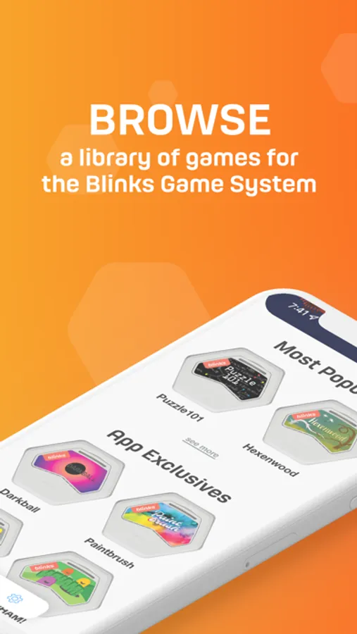 The Blinks app is a companion app and games library for the Blinks Game System. Browse a library of games for the Blinks Game System. Watch tutorial videos and learn games from the illustrated instructions. Access games published by Move38 and designed and developed with a community of open source game makers. Use the NFC-enabled Blink Link, to load games directly from the Blinks App. Download new games for free or with in-app purchase to load onto your Blink Link instantaneously. Join a community for the future of in-person play!