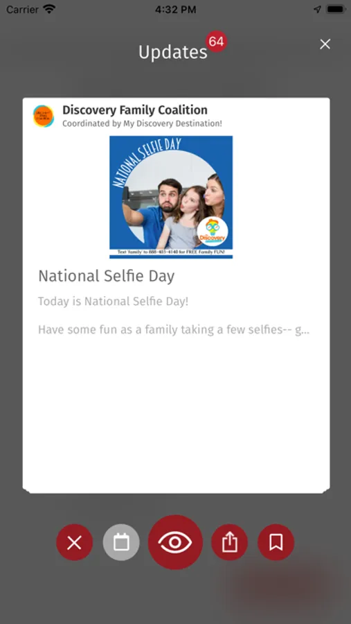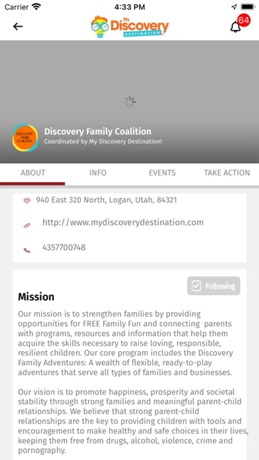 • Easily discover other family resources and events from our partners based on your preferences. The Discovery App is your “family fun” feed customized around what you care about. No more searching your inbox, or looking for misplaced flyers. Just launch the Discovery app and all the latest events, news, resources and volunteering opportunities are at your fingertips, perfectly organized right on your smartphone. It’s family fun, simplified and streamlined.