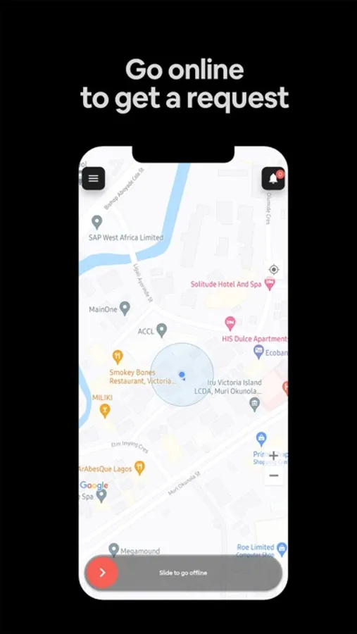 The couriax app is designed to help you locate people within close proximity to you ONLY. You tour within the same axis and get your deliveries done swiftly.