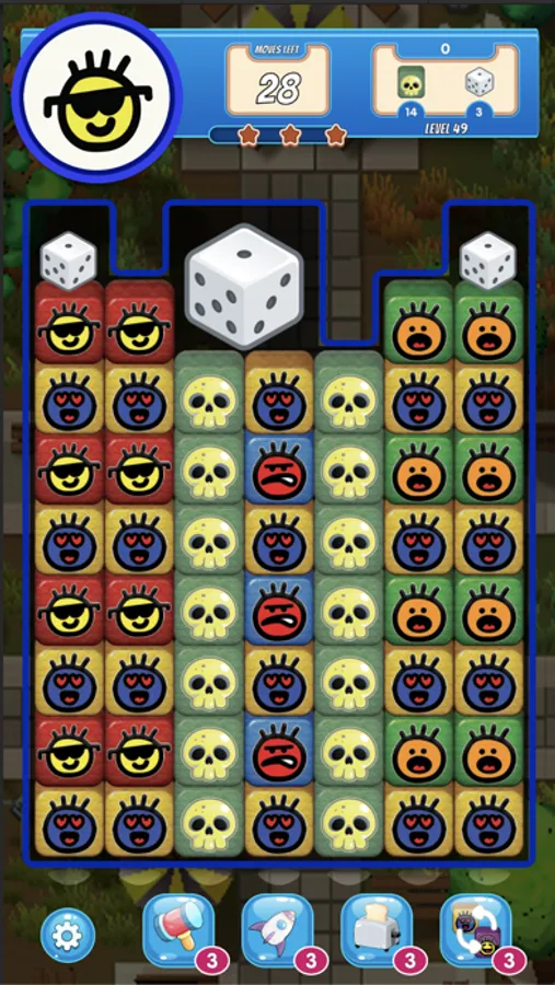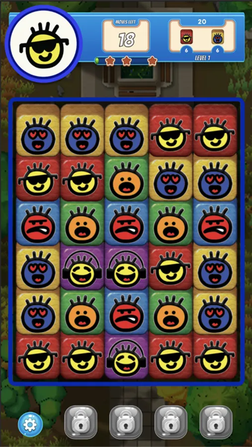 - Tap on any 2 or more Emoji Blocks adjacent to one another of the same type to collect points.