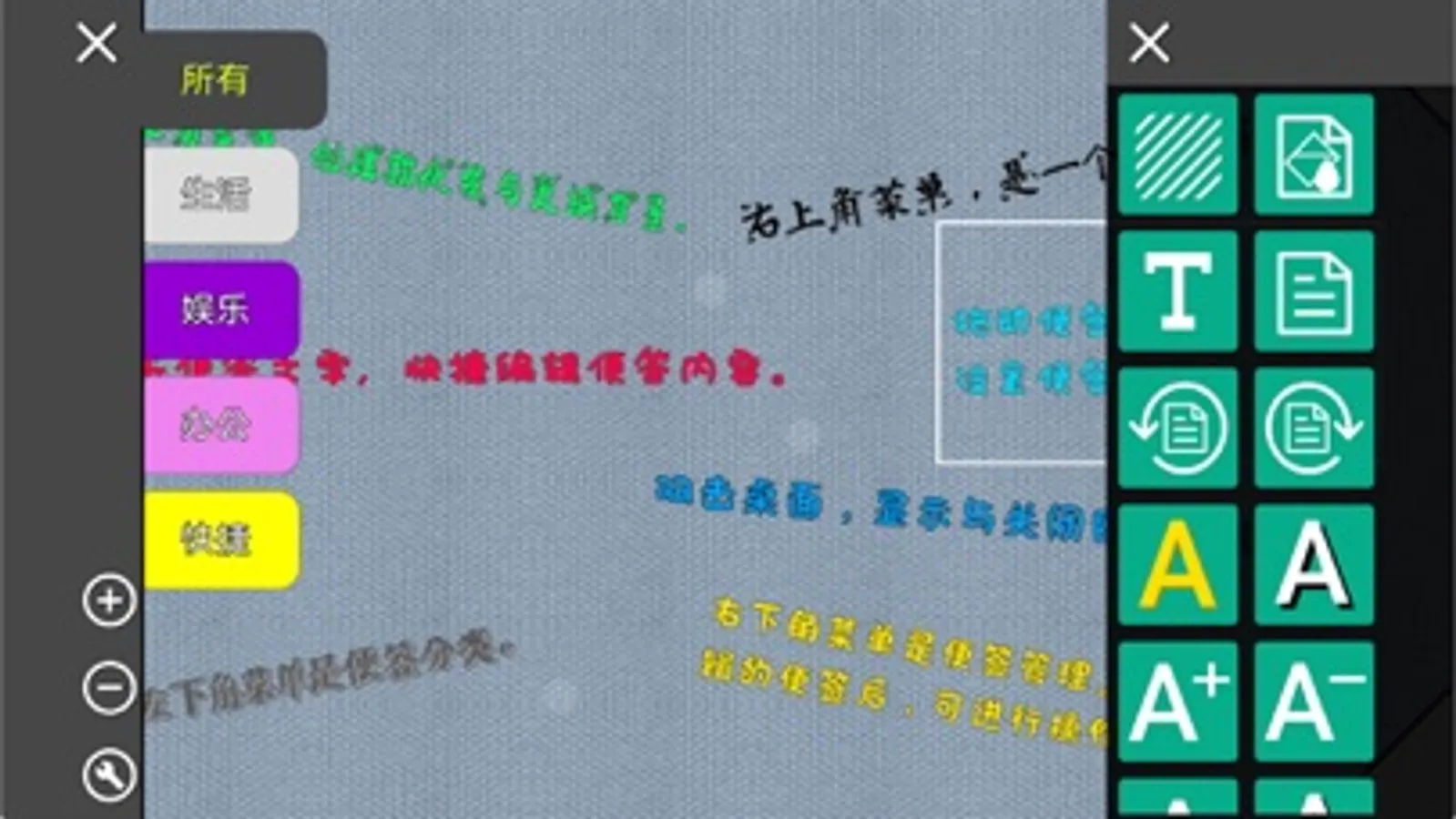 便签小助手,是一款便捷的移动平台便签小工具。可随时随地查看自己的便签,摆脱短期记忆心理负担。便签可分类,可更改背景,可修改字体,大小,颜色,等多种属性。提供了十几种可爱的字体,几十种桌面背景,总有一款适合你。内置了一个简单的小时钟,可用于短期内关注时间,比如“抢券”,“秒杀”操作。