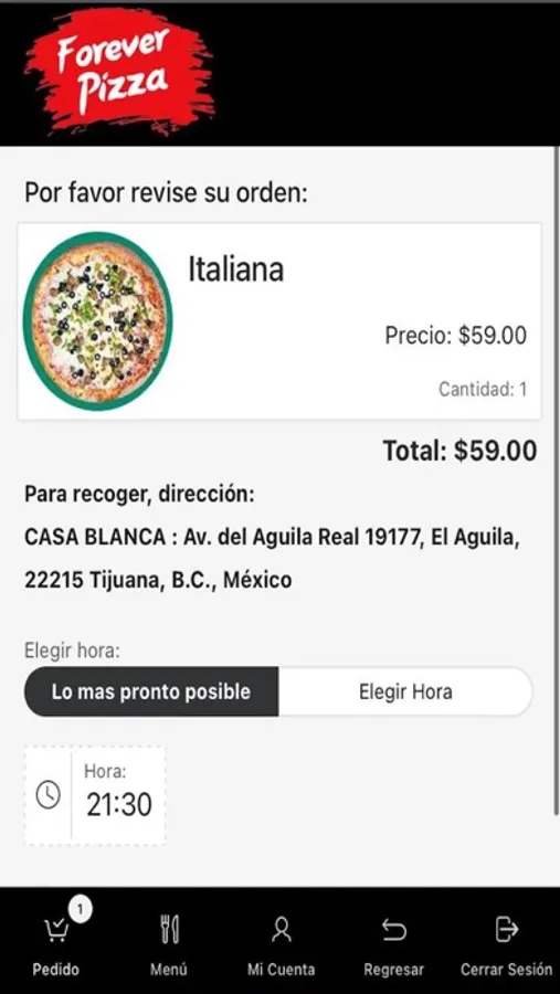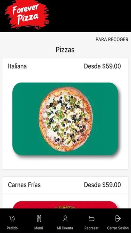 Forever pizza es una app para realizar pedidos en linea