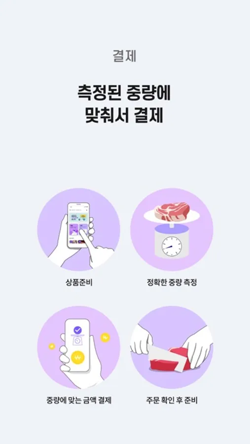 정육점과 동일하게 무게에 맞는 정확한 금액이 결제됩니다.