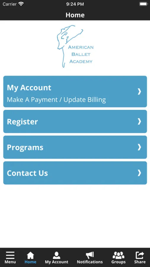 The American Ballet Academy app allows you to manage your account with ease, register for classes, and special events. You'll also receive important notification about class changes, closings, registration openings, special announcements, and upcoming events.