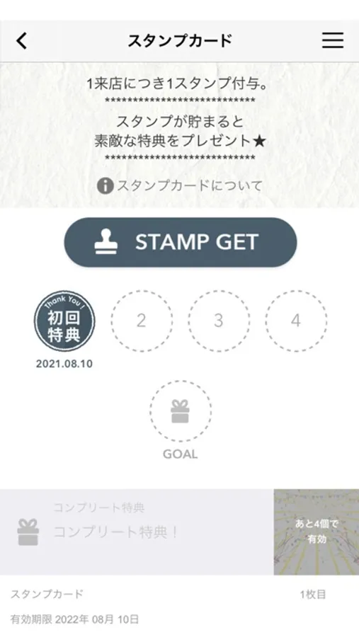 たくさん貯めていただくと次回使える特典をご用意しております。