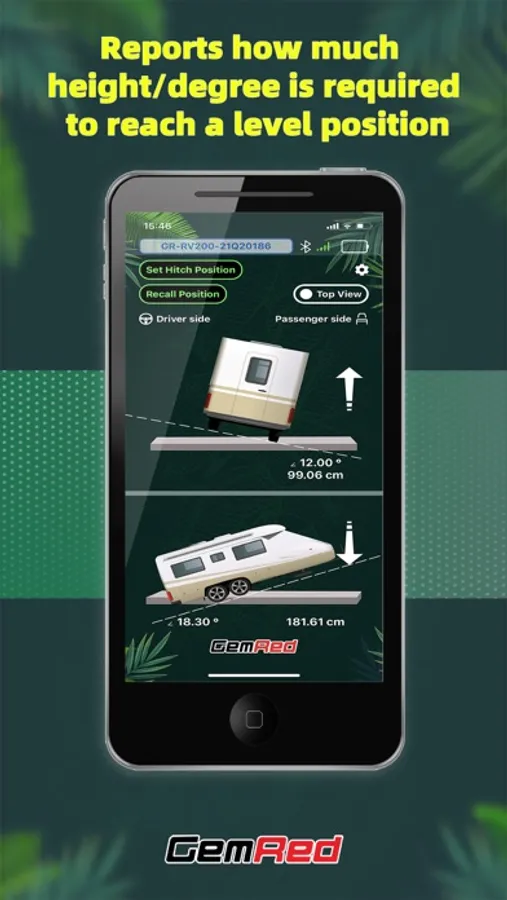 GemRed’s GR RVLevel is a Wireless Vehicle Leveling System. This app accurately reports how much height and degree is required to reach a level position of a vehicle and tells you where that height and degree is needed. Greats for towable and motorhome vehicles. You can simple and efficient get your vehicle level from the comfort of your driver’s seat.