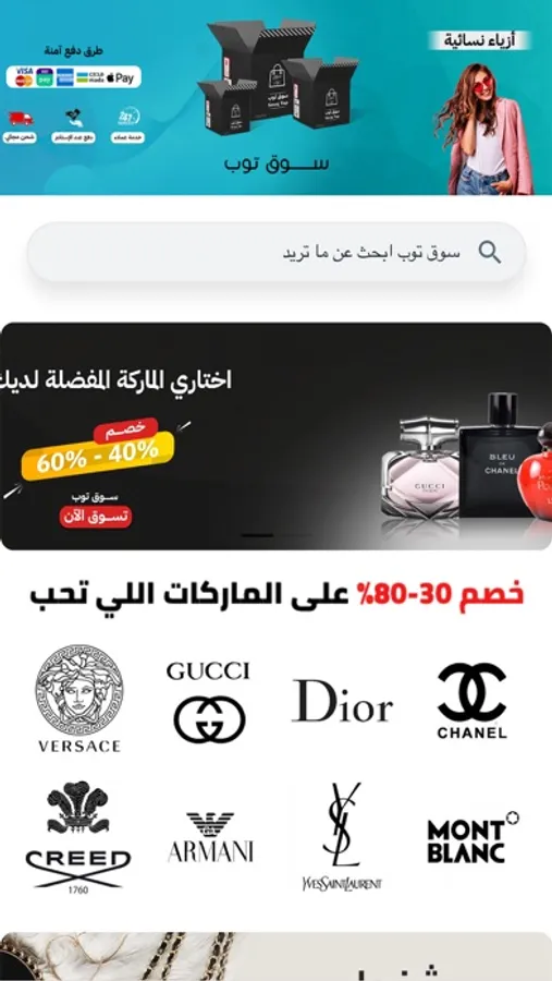 سوق توب اروع الازياء و العطورات الرجالية والنسائية والحقائب والاحذية