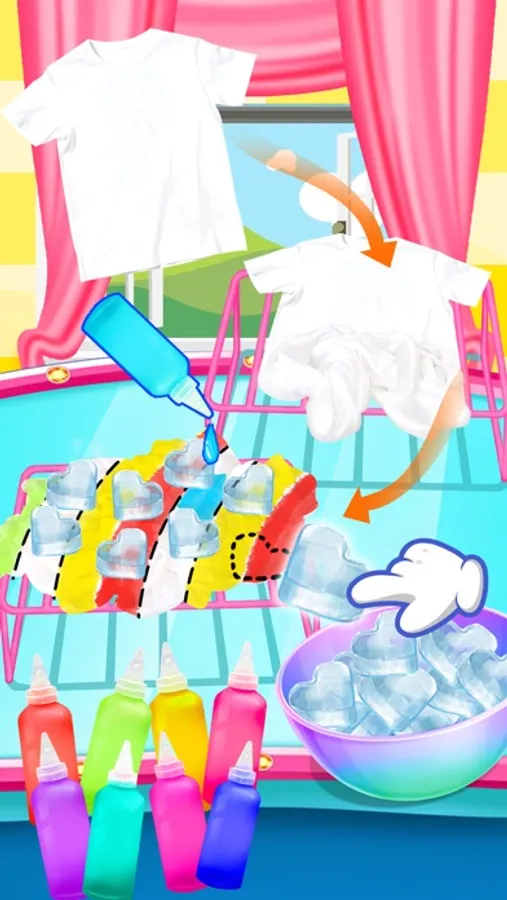 Ice tie dyed clothes are made by covering an item of clothing with ice, sprinkling dye color across the ice, then allowing the ice to melt and apply to dye to the shirt.